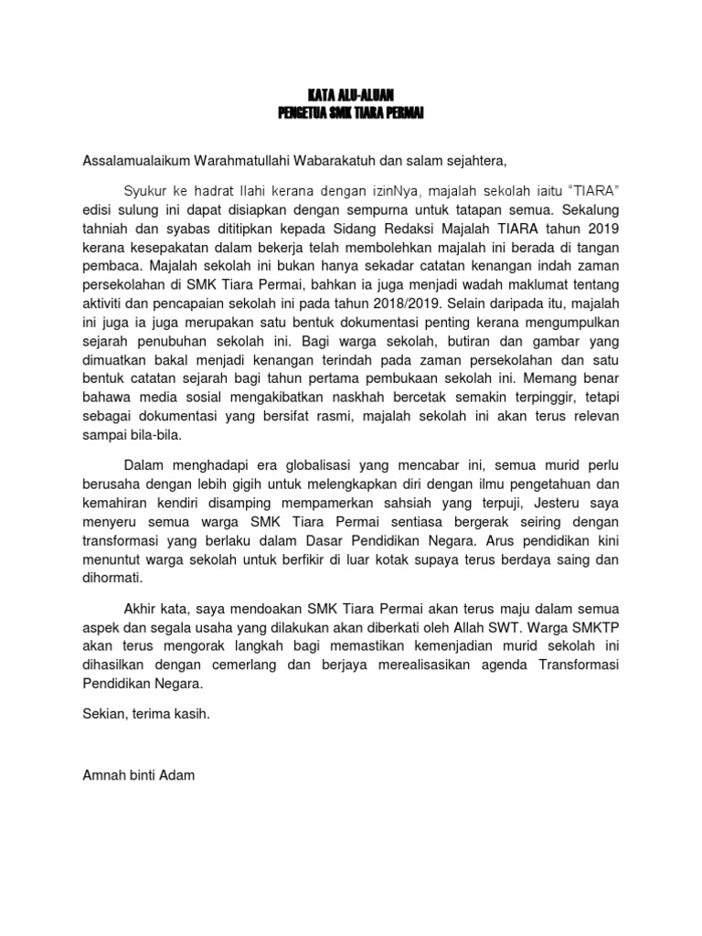 You can also. Contoh Soal Dan Materi Pelajaran 8 Contoh Kata Aluan Buku Program. Pdf Teks Ucapan Aluan Sempena Pelancaran Program Hari Kesedaran Bencana 2015 Khairul Hisyam Kamarudin Academia Edu.